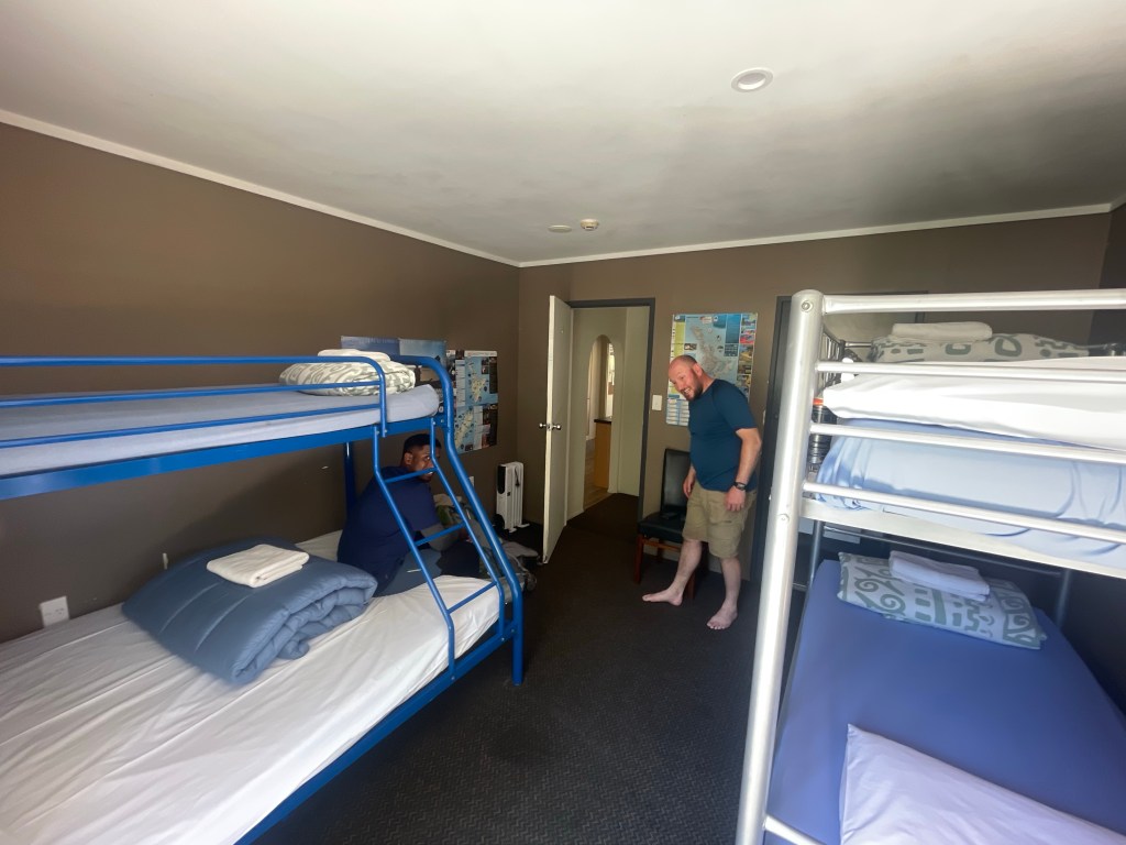 - Accommodation: Cabin at Ahipara holiday park.