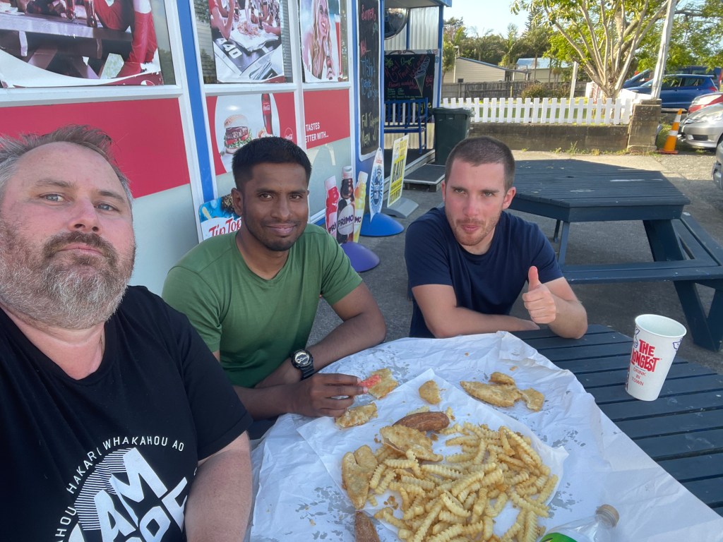 Not long after 3pm Phil, Christian & Tim turned up, they are going to get a taxi into Kaitaia for the next few nights to have some zero days to rest their battered feet & legs & we will catch up with them again tomorrow afternoon.