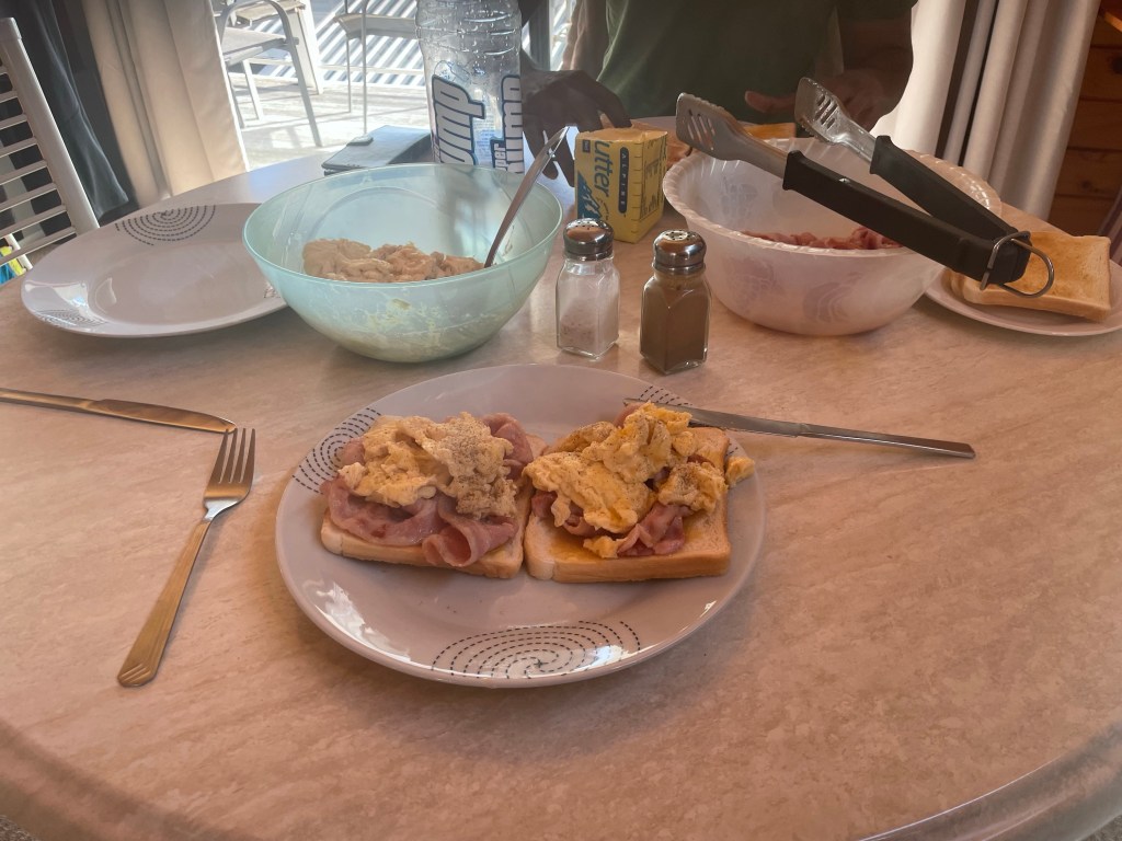 It was a breakfast of bacon & eggs this morning, good change from cereal. I’ve spent the morning doing life admin getting everything ready for the following 6 days & feel I can probably just relax this afternoon! So good.