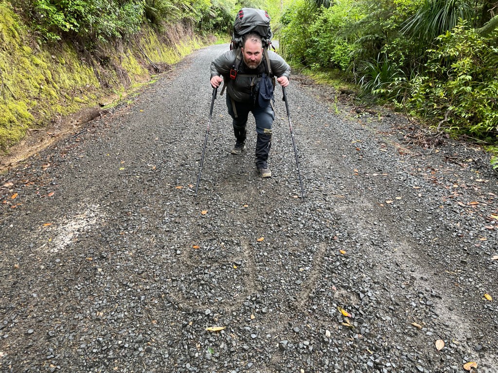 The Ferry ride was nice & quick & we were in Russell & walking before 8am. We had to walk 5km along the road before reconnecting with the trail & then a further 9km to a turn off on a gravel road that would lead us up to a 300 metre point before descending back down the other side.