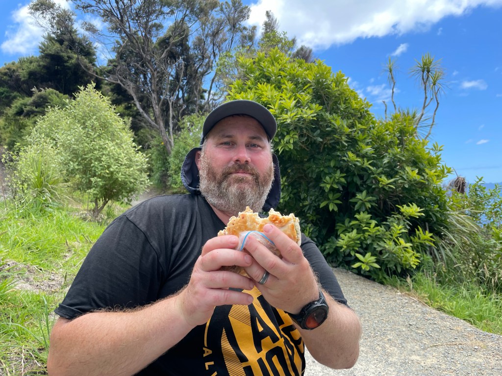 Kevin & I stopped for lunch once we found a nice viewing spot & a bench seat on the coastal track. I was lucky enough to have a Bacon & egg pie that Andrea & dad had made us all for lunch that day! So good!