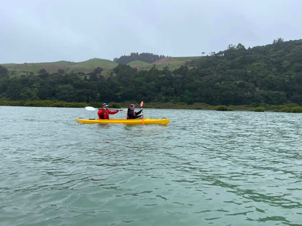 Gokul & I had paired up in a double & kayaked the 7km down the Puhoi River, such a great change to walking. It did get a little choppy though & at the end we were fighting against the wind.