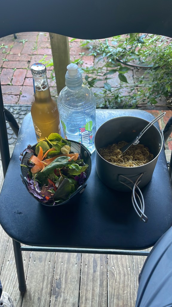 Dinner tonight, beer & salad courtesy of Casey our Trail angel.