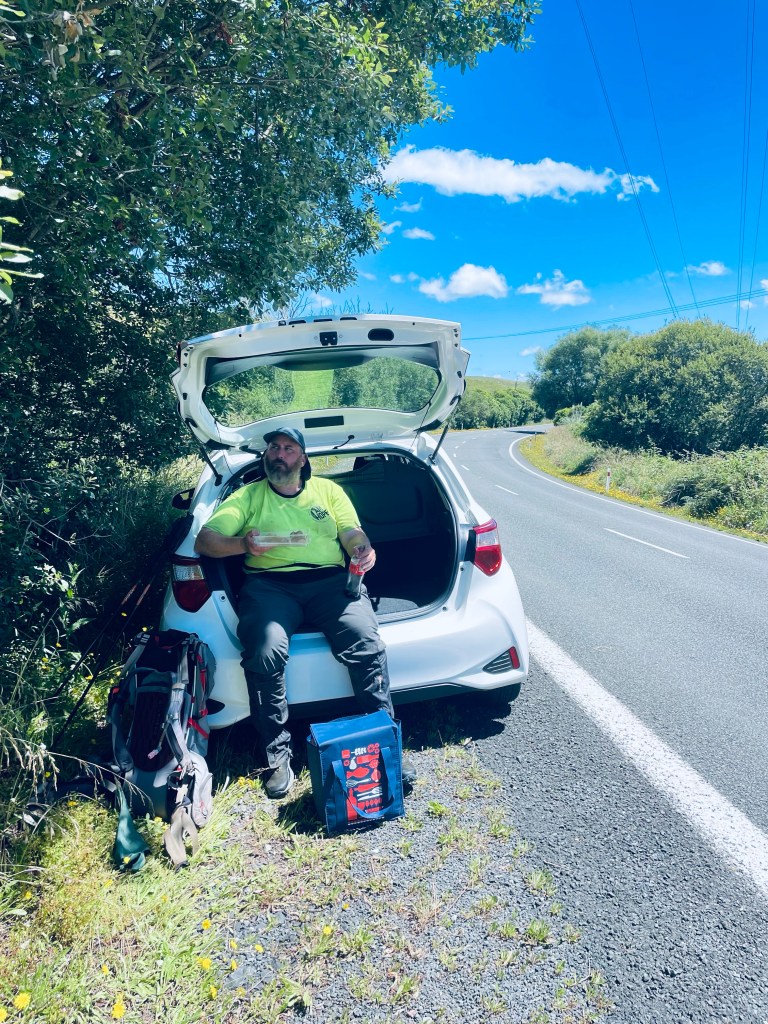 Just over 19km into today, Antonia turned up with lunch & we sat in the boot of the car having a cold drink & eating last night’s Chinese leftovers. It was such an awesome thing to have Antonia turn up for lunch in the middle of the day!