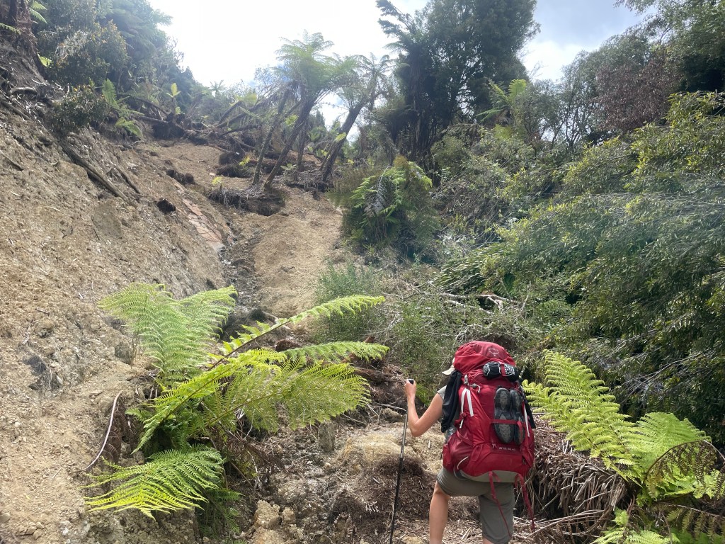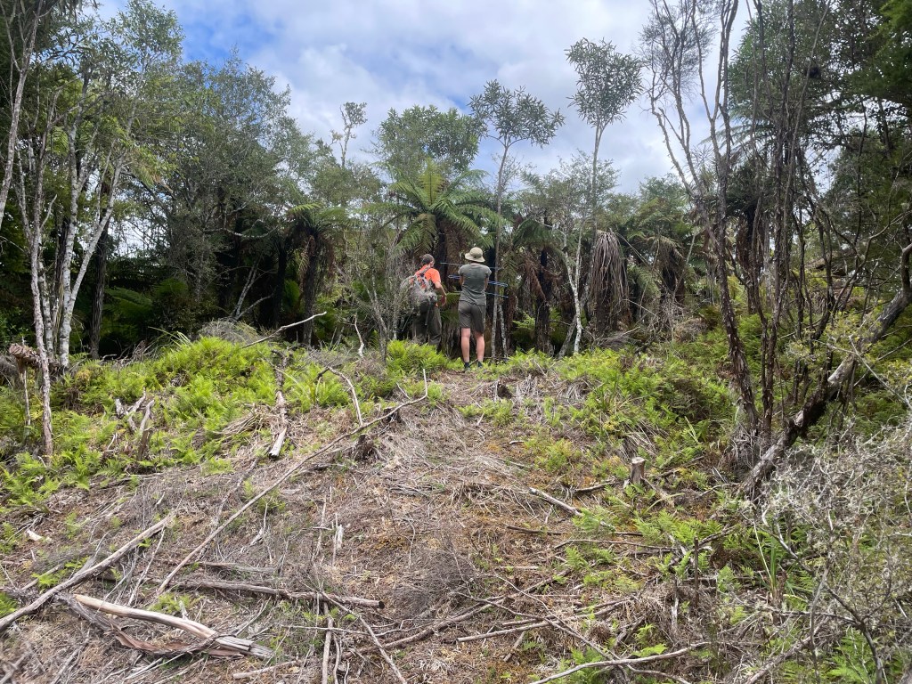 As we were finishing the slip, the DOC Ranger we had bumped into earlier who’s monitoring young Kiwi chicks was also coming across. He has 2 young chicks on this side of the slip to check out. The cool thing is Nici got to help him & is going back Thursday to spend the day helping.