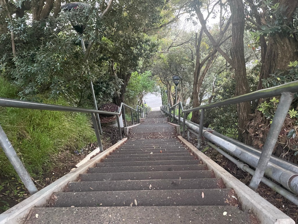 Once across it was a steep ascent up many stairs to get up & onto the hill. The views back down seemed amazing!