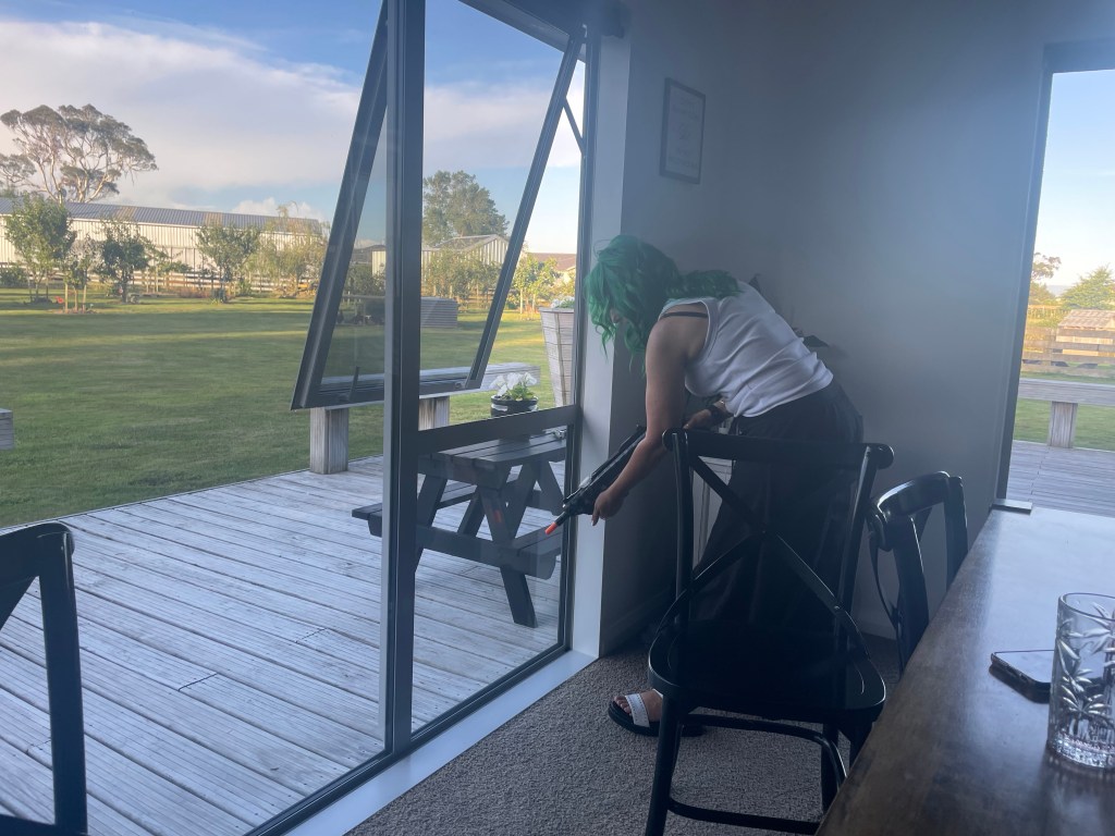 We got back to Danny & Wendy’s & they were so accommodating. Offered to wash our clothes, cold refreshing drinks & just relaxing. They live close to farmland & can get a few flys, they have this salt gun & it is so much fun using it.
