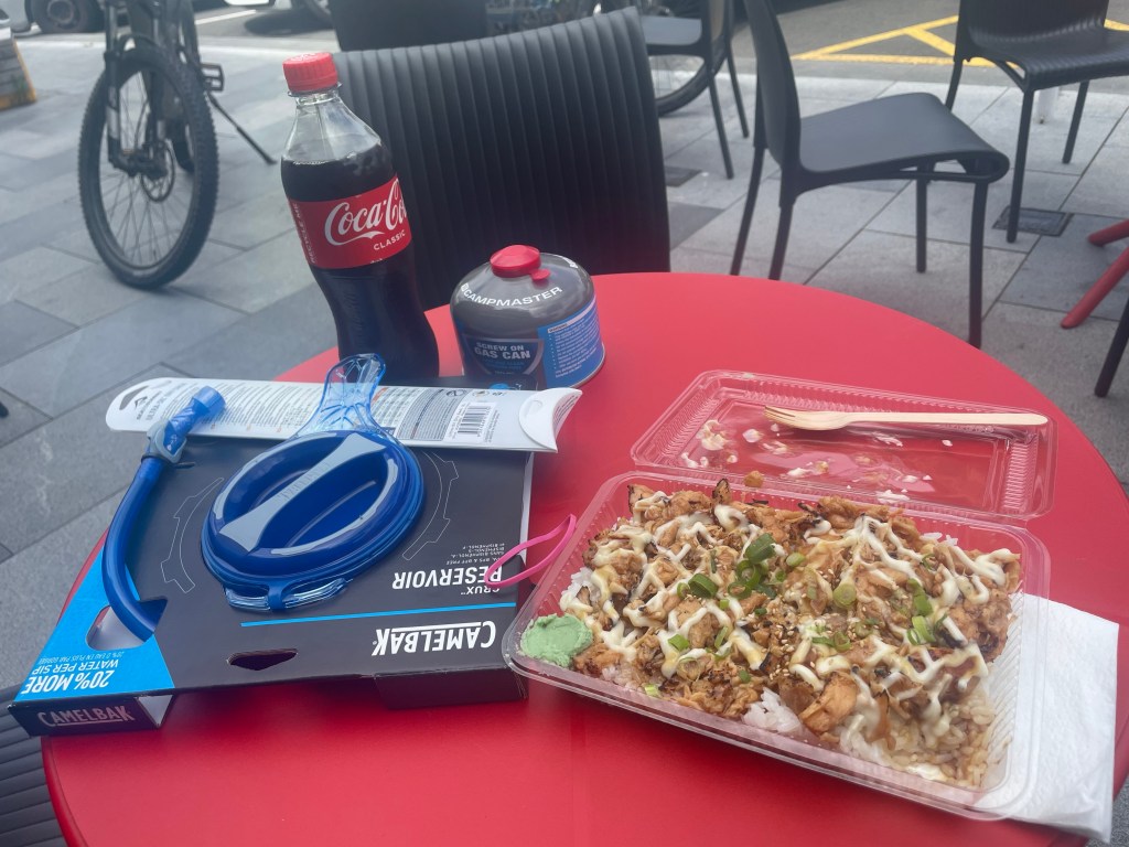 Afterwards we parked up near the optometrist’s as Nici needed to organise new sunglasses. I walked around the corner to the local Bivouac & bit the bullet buying a new 3 litre bladder to replace the one I have as I have been searching for a bite valve for close to 1000kms (mine has a big split in it) I have now gone from an Osprey 2.5 litre to a Camelback 3 litre. I also purchased a new dry bag to replace one that was not fit for purpose anymore and also a new gas canister. The shop wanted to support my cause & gave me 20 percent discount. So amazing!