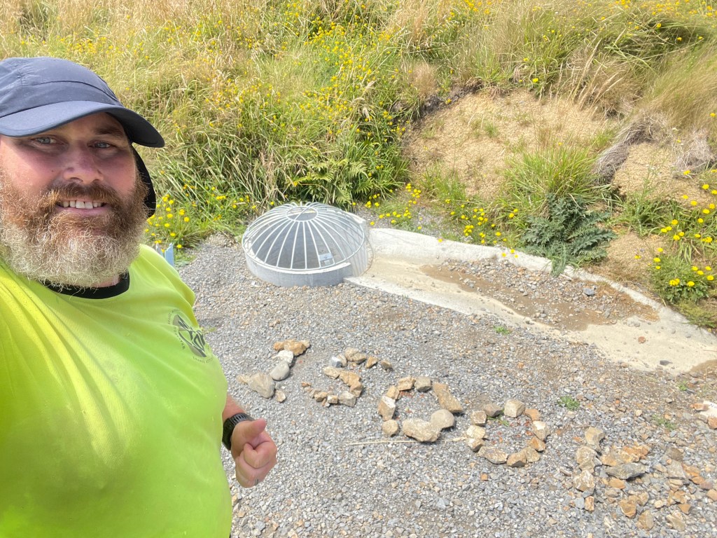 We were good to go at 8am after a coffee & pancakes! Danny dropped us off at the walking bridge in Palmy, where we finished on Thursday afternoon. The morning started with drizzle but not enough to have to put a raincoat on.