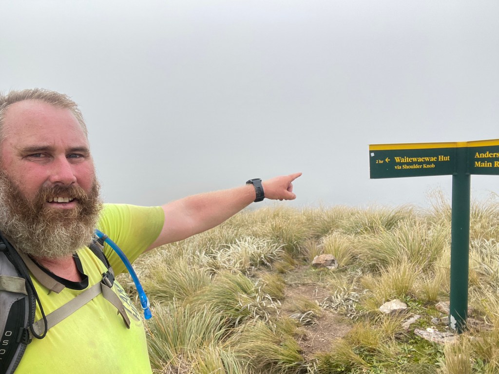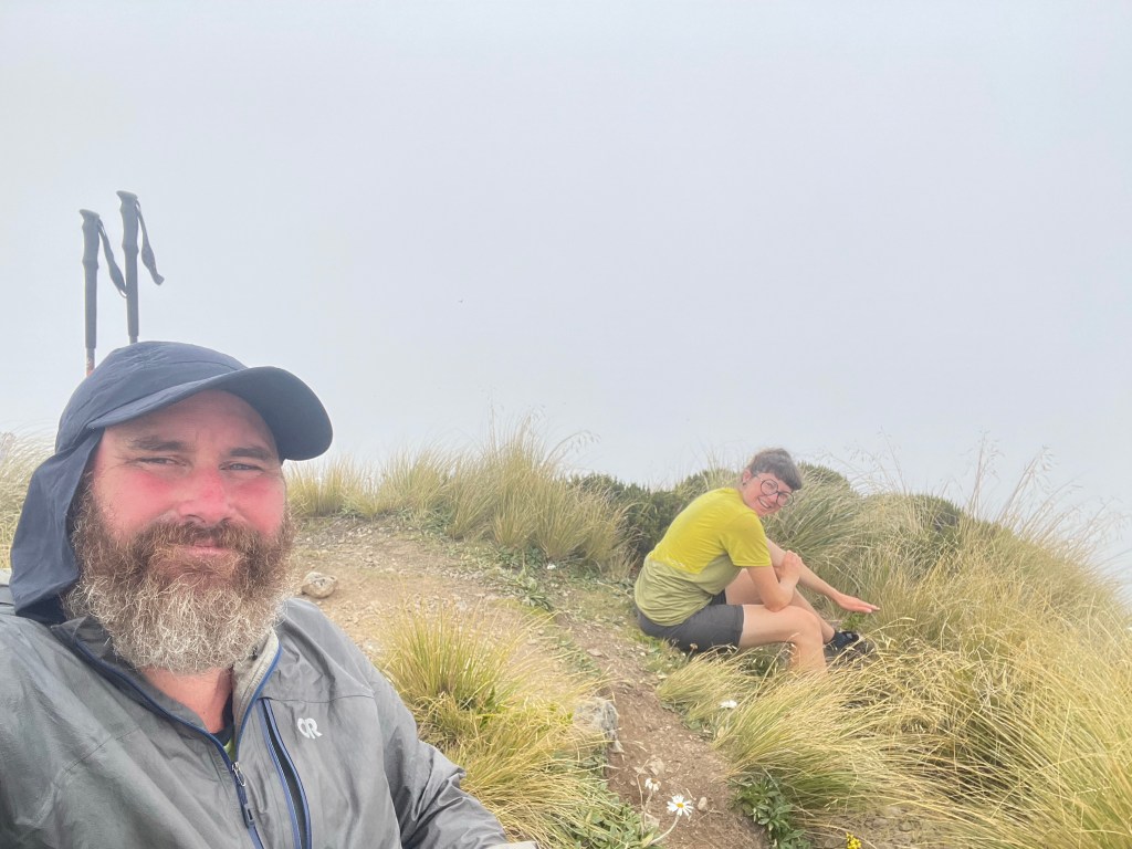 Loaded with water again it was a good 300 metre climb with some parts literally climbing to gain Mt Crawford, the highest point on this section of 1462 metres above sea level. I could imagine the views from here would be spectacular, unfortunately the visibility today only allowed you to see 50 metres in front of you. Nici & I sat here for a break for about 30 minutes.