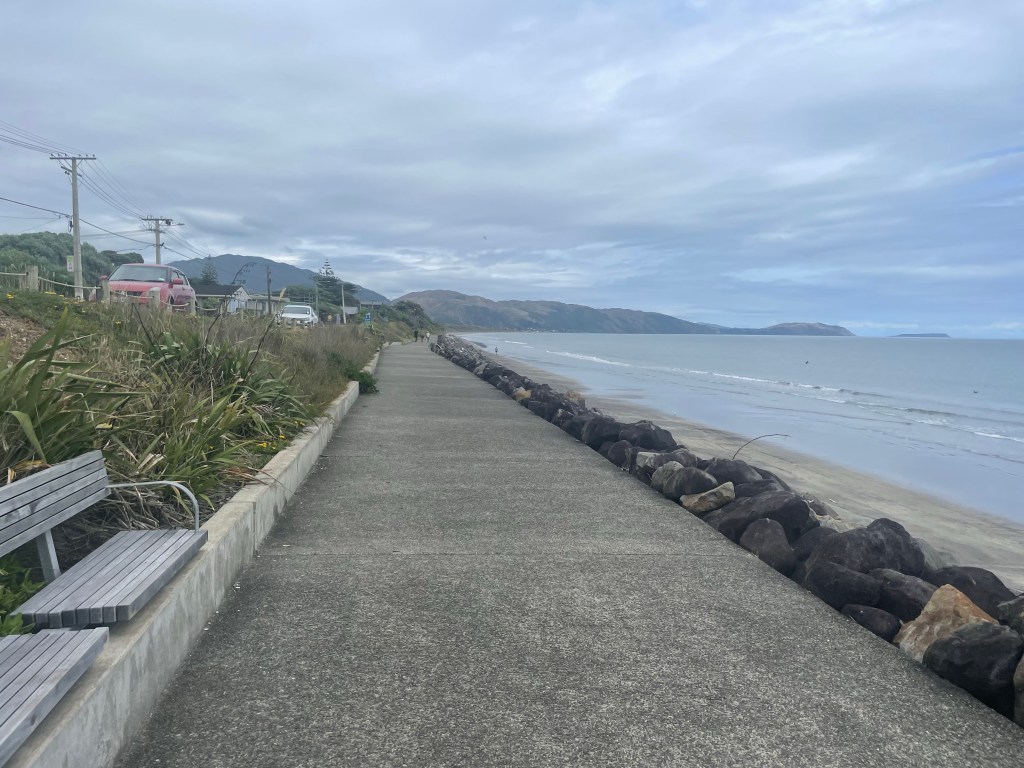 We walked down the beach until we reached Paraparaumu & went up off the beach to grab a coffee. As well as some stuff from the bakery for lunch.