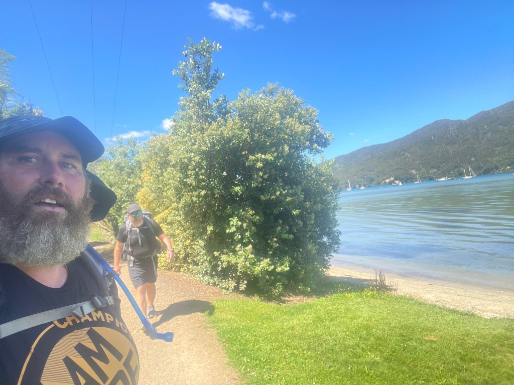 Within just over a little more than 6 hours we were in Anikiwa, the caravan shop was open so we had a coke & I got a bottle of water each so we had enough for the final 7kms to the Queen Charlotte tavern.