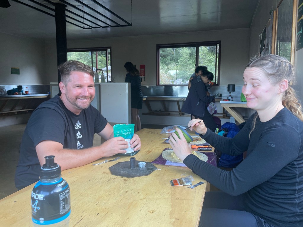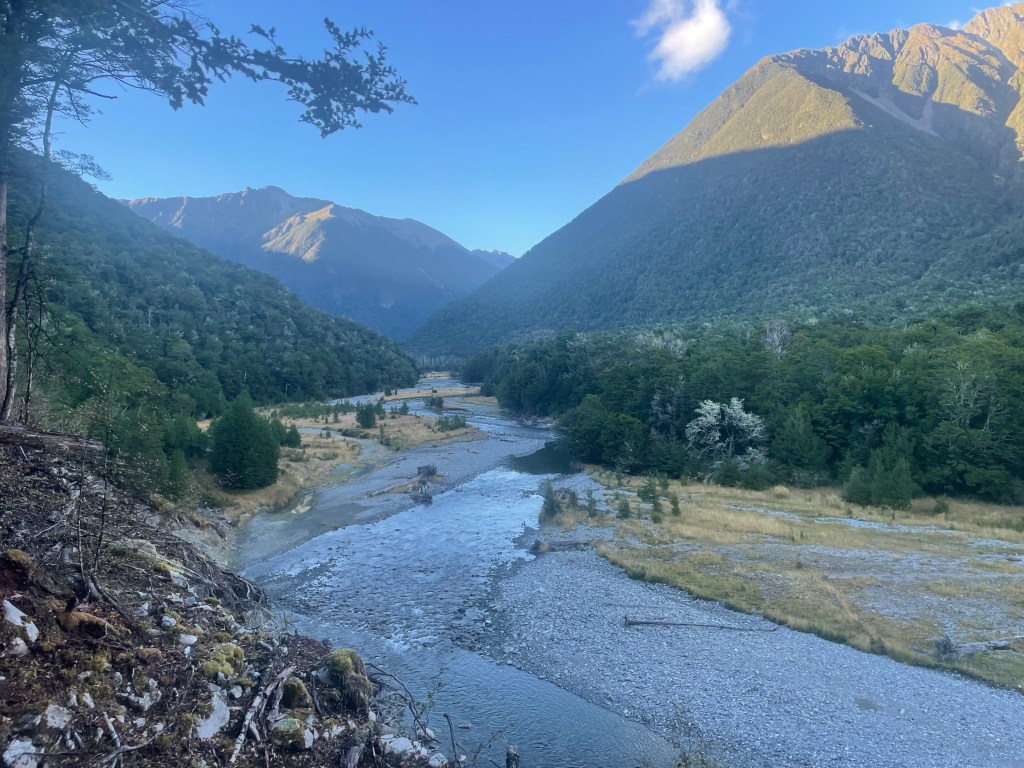 The plan is to stop for breaks every 2 hours so it would work out perfect to have a break & then the second break around 11am at John Tait hut. This was 14km in & was a nice easy gradient & track. We stopped here for 30 minutes for an early lunch before taking off. The sign said 3 hours & 6.7km to Upper Travers from here.