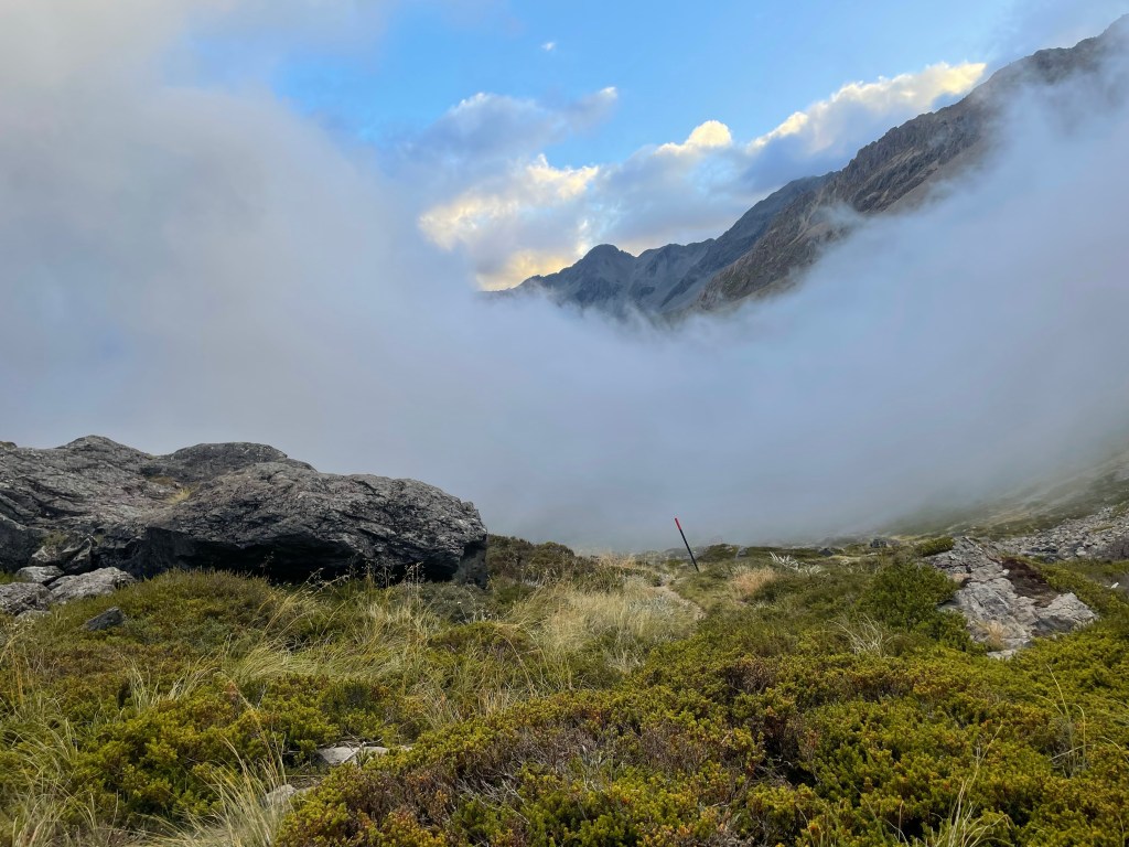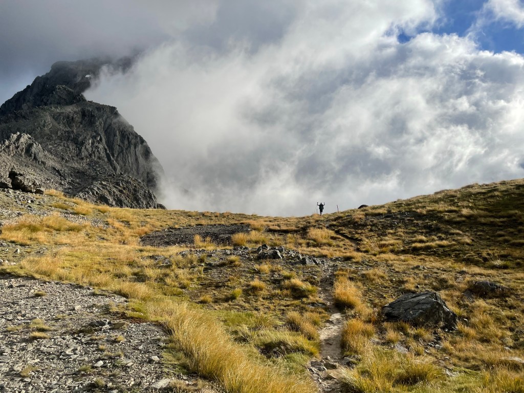 Straight after this it was a steep climb up through rocks to gain the saddle, I managed to get there just under an hour and a half of leaving the hut, I felt good about this timing. We stopped at the top for a break & it wasn’t long before Sam had caught up, he stopped & joined us also.