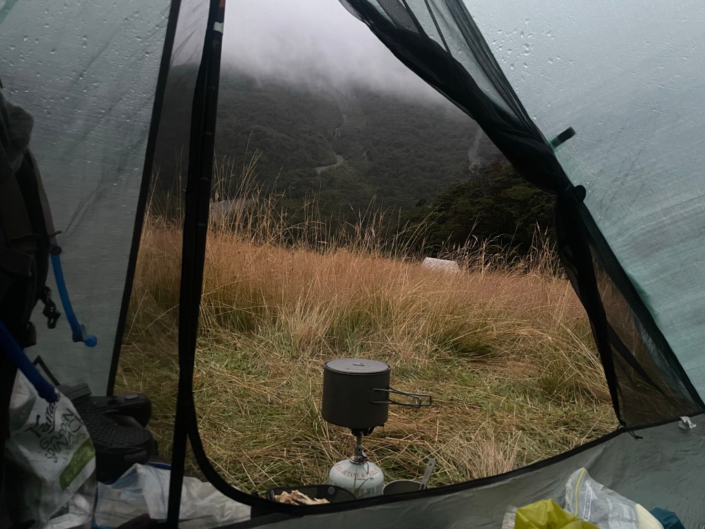 It was good to get here early & dry the tent out, get the fire going & have hot noodles & a hot chocolate in the warmth. Alina & Ladina turned up about an hour later & were happy to have a nice warm hut to come to.
