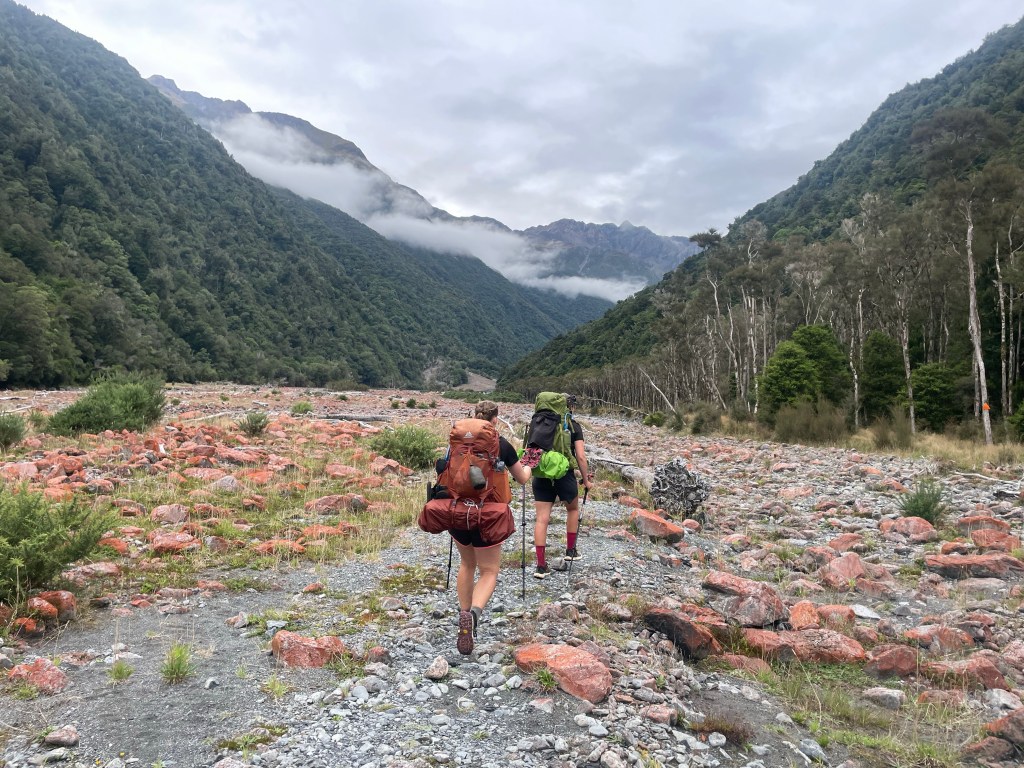 With 2km left & 300 metres of elevation to climb we set off in the rain to climb over multiple rock’s & boulders as well as zig zagging the stream. This would be quite fun in good weather but at this point I was over it & was happy when we reached the hut just after 3:30pm.