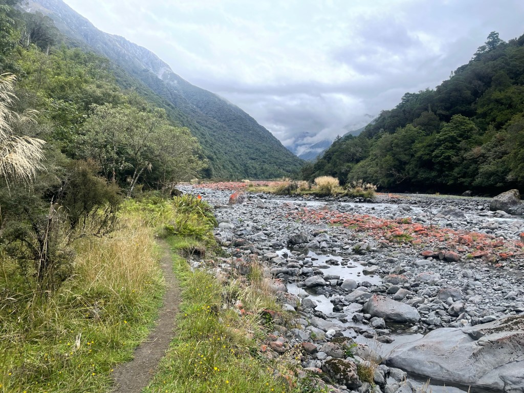 Today we plan to cross over walk up the road to the Morrison footbridge & then head up the deception valley to Goat pass hut. As we hears that the track along the river is dodgy. It only took us an hour to reach the footbridge.