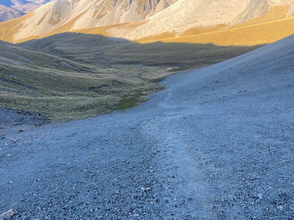 The views from the saddle were beautiful, I stopped for a minute to take some photo’s & videos before descending the scree slope, this would have been fun to scree run, unfortunately the scree was frozen from this morning’s frost so there was no give.
