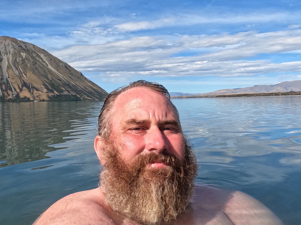 Being only 3km left to go & a hot day I decided that once there was only about a kilometre to go I would stop strip off into my togs & go for a dip in the lake. It was amazing! So nice to just lie there in the cold water.