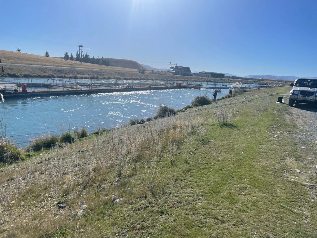 Since I ate a huge breakfast i decided I would walk until around 1pm before stopping for lunch. Just before this & right before the weir I met a couple of people fishing, Richard & Suz, they are staying at their holiday home in Ohau & after asking if there is any shops there they told me Twizel is the nearest. I was hoping to buy some fresh milk & Richard & Suz have offered to grab me a bottle in Twizel on their way back & drop it off to where I’m staying. More trail magic.