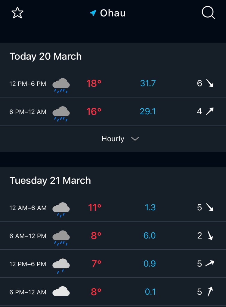Today is about waiting out the bad weather, there is a lot of rain forecasted as well as strong wind gusts, here’s what I’m expecting: