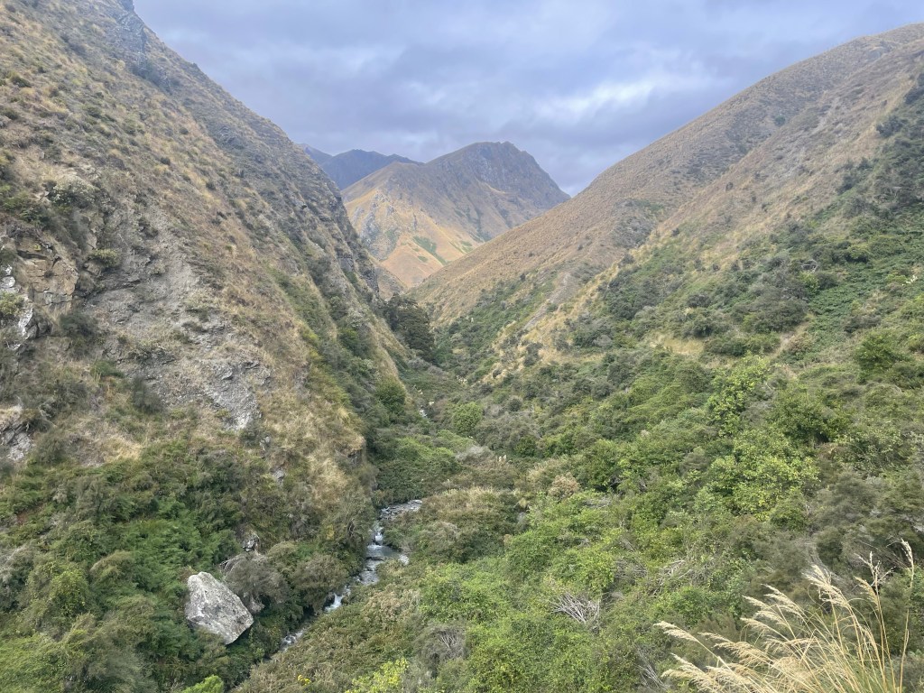 Definitely a ridge not for the faint hearted. It dropped nearly 400 metres in the first kilometre! After getting to the bottom, there was one last climb of 100 metres before sidling around to Highland creek hut.