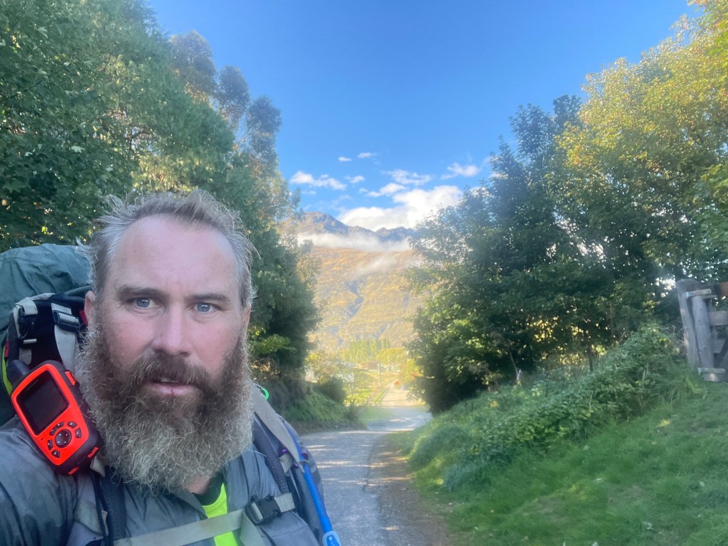 I finally started walking just before 9am. Following a trail a few kilometres down to Lake Hayes. From here you go round the right hand side of the lake for 4km. About a kilometre in I met Luke (a work colleague) who was out for a run with his dog.