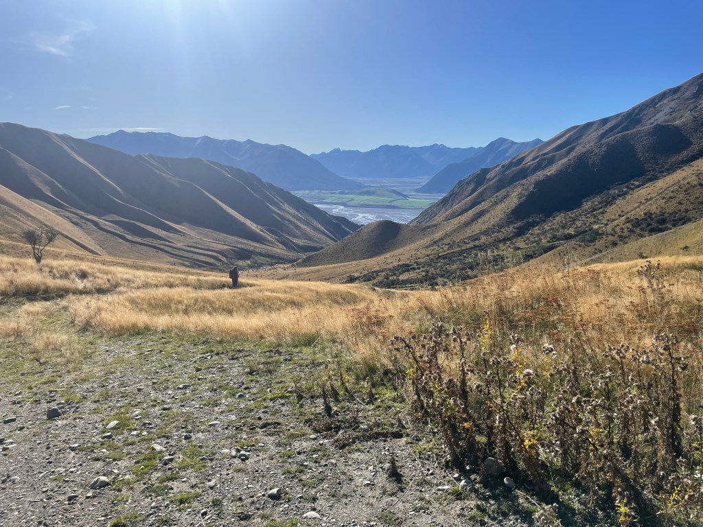 It’s a gentle climb on the 4wd track up the valley with some beautiful views looking back down to the Rakaia river.