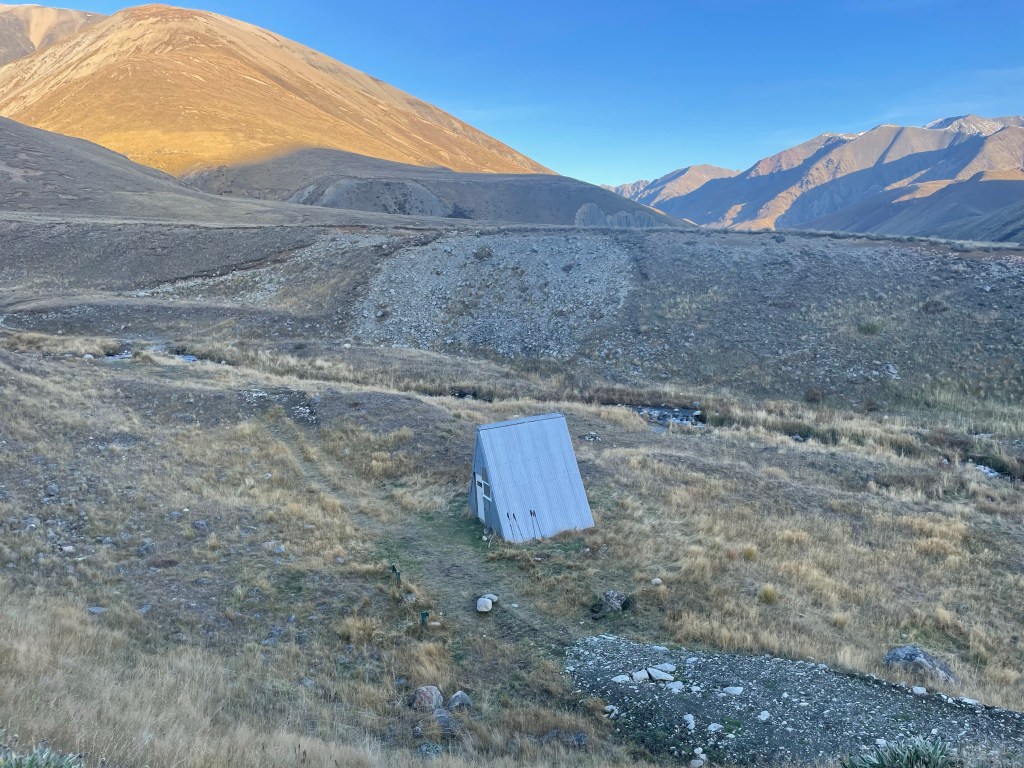 This is now the start / top of a new valley & it was a gentle 3km but at times slippery descent down towards the A frame hut. At around 2km the toilet by the hut comes into sight. You don’t see the hut though until you are basically on top of it as it’s down by a stream tucked between two cliffs.